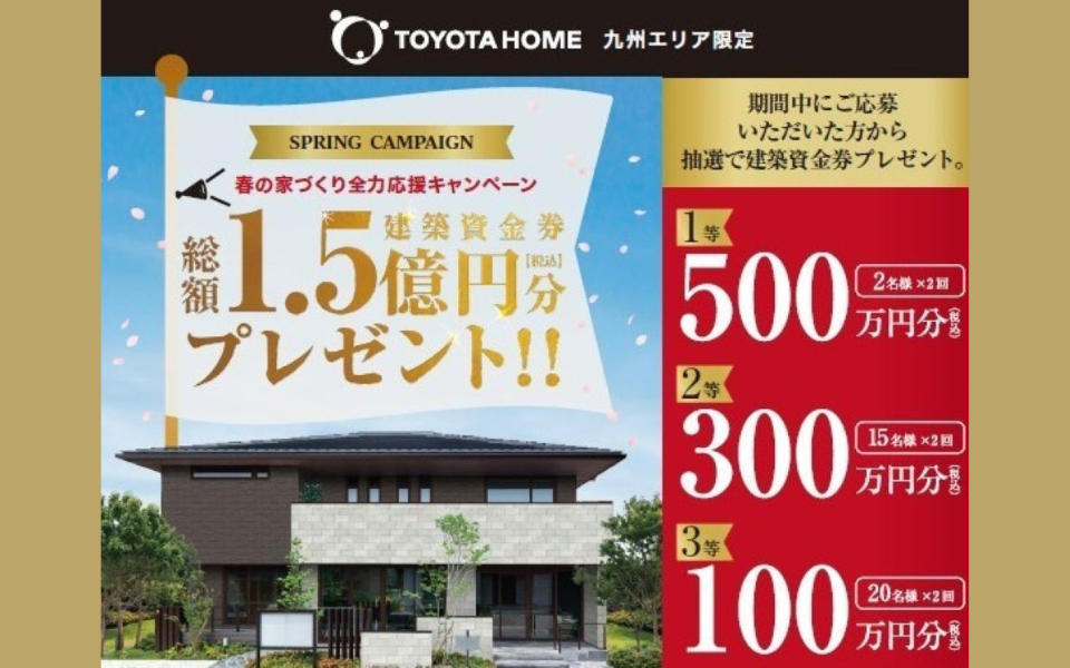 九州限定│春の家づくり全力応援キャンペーン!建築資金プレゼント