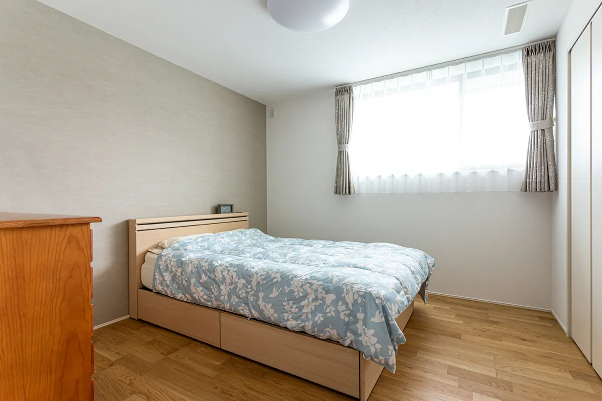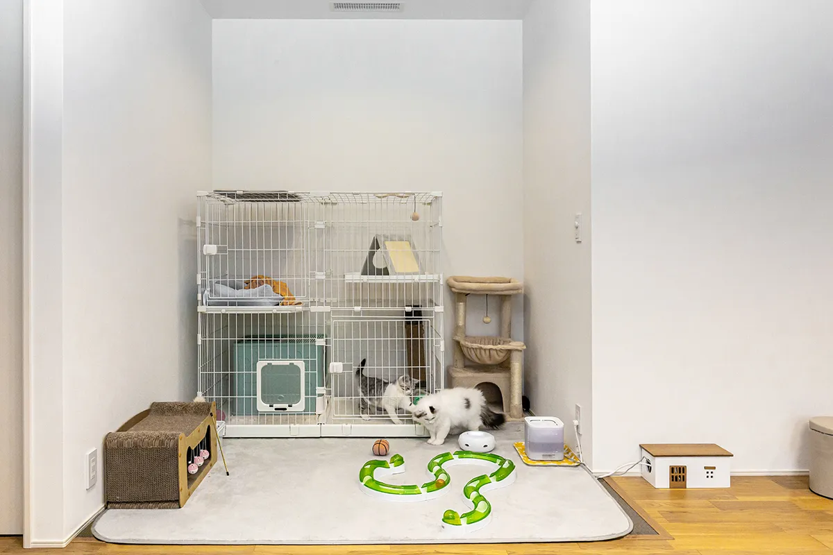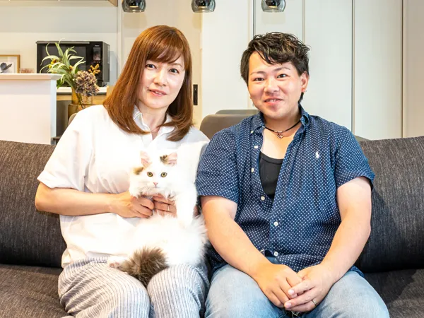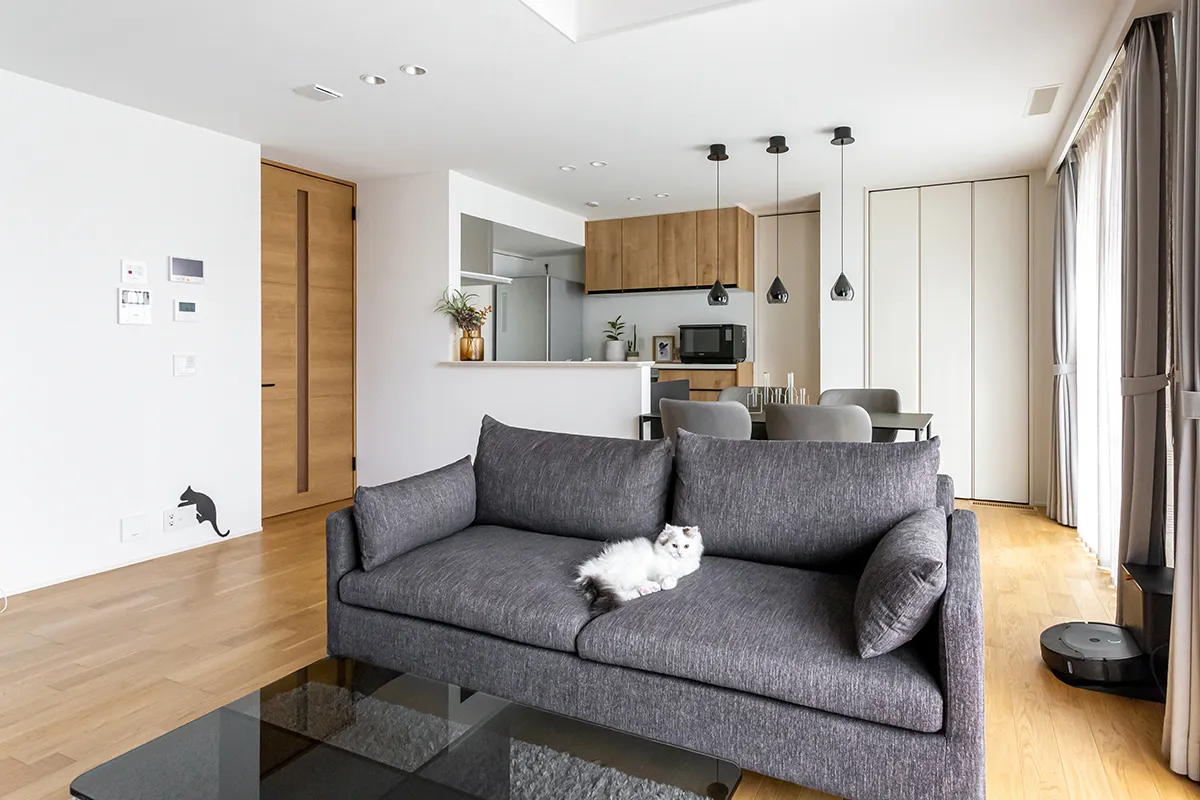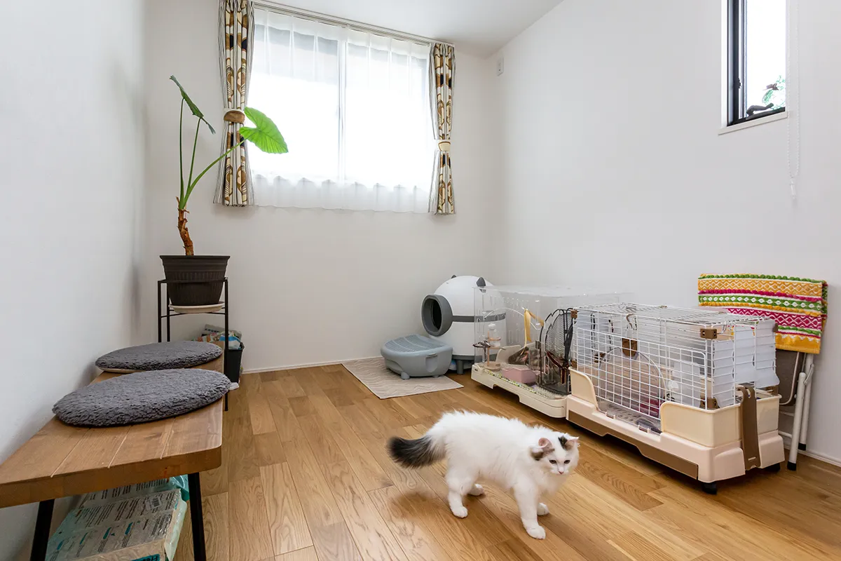 ご夫婦二人暮らしで部屋数の優先度が低いことから、階段の上り下りの負担がない平屋を希望されていたK様。街並みに配慮された分譲地内にある当土地と、全館空調「スマート・エアーズ」に魅力を感じられ、トヨタホームでご新居を構えられました。K様は旧居からリス2匹と生活を共にし、一軒家に住むならさらに猫を迎えたいと思われていました。そこで、暑さや寒さにデリケートな動物たちが快適に過ごせる住環境は必須。家中がいつでも快適でありながら光熱費負担が抑えられる、全館空調「スマート・エアーズ」はまさに理想通りだったそうです。「室内扉を開け放っていても室温を一定に保つことができ、猫は家中をあちこち自由に歩き回れます。私たちが留守の時も温度管理ができているので、共働きでも安心です」と、のびのびと快適に過ごす動物たちを、目を細めて見守るK様です。