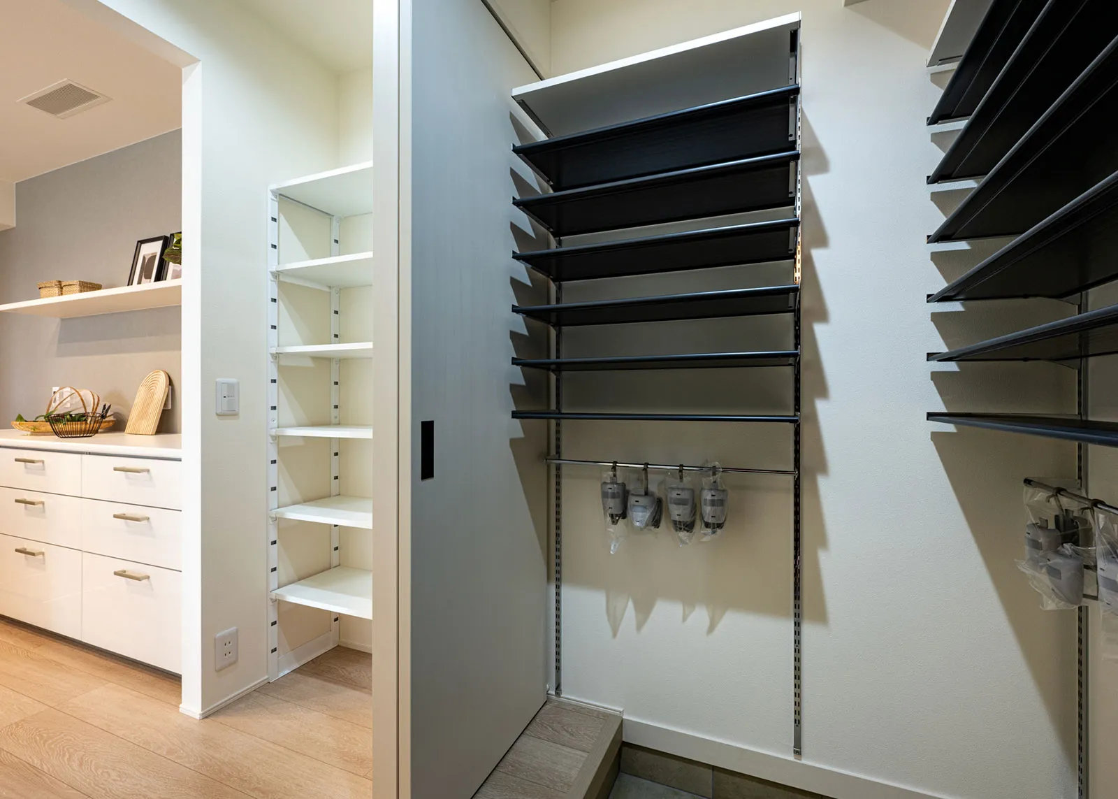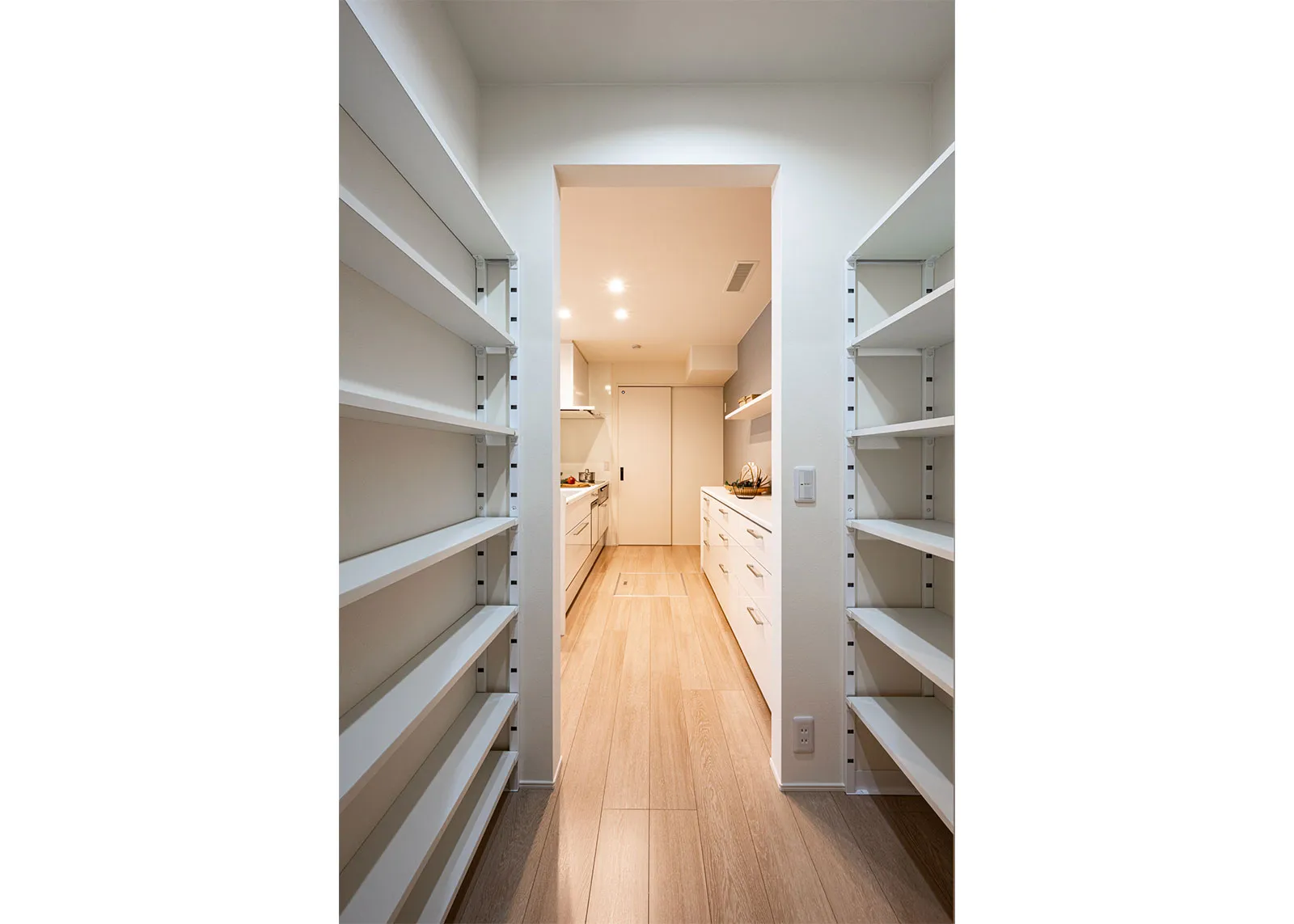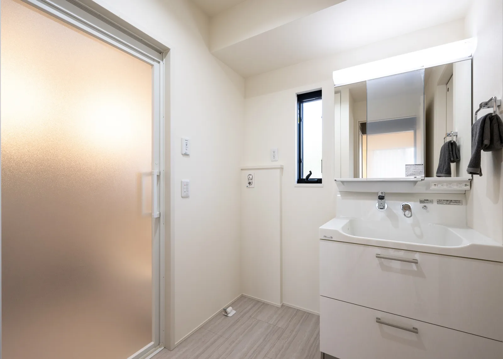 玄関→WIP→キッチン→洗面室が直結。機能的な家事導線を確保。