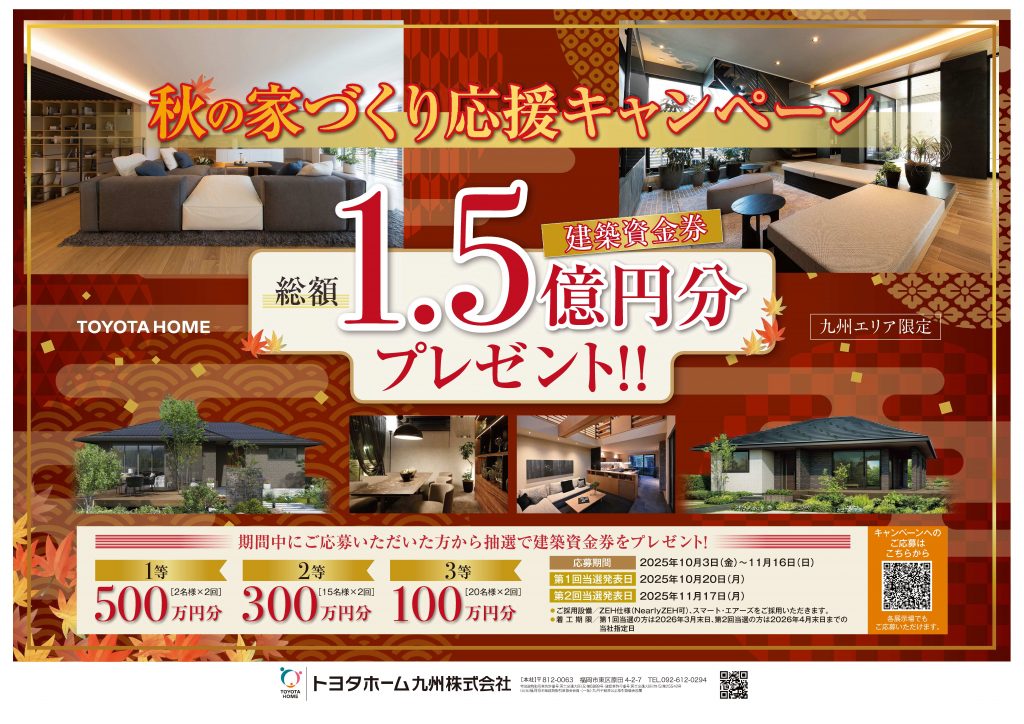 【九州エリア限定】秋の家づくり応援キャンペーン! 総額1.5億円分 建築資金券プレゼント!