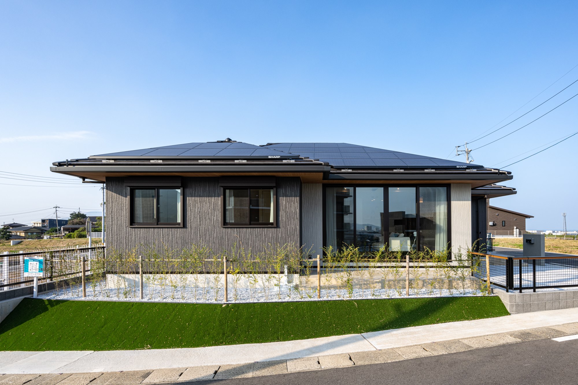 リビングの大きな窓から続く、芝生(高機能人工芝)の庭は、お子様の遊び場やバーベキューなど楽しみが広がります<太陽光発電システム>◆価格改定◆◆ 2024年12月1日に価格を改定 <4,550万円→→→4,450万円>(旧価格公表日2024年3月15日)