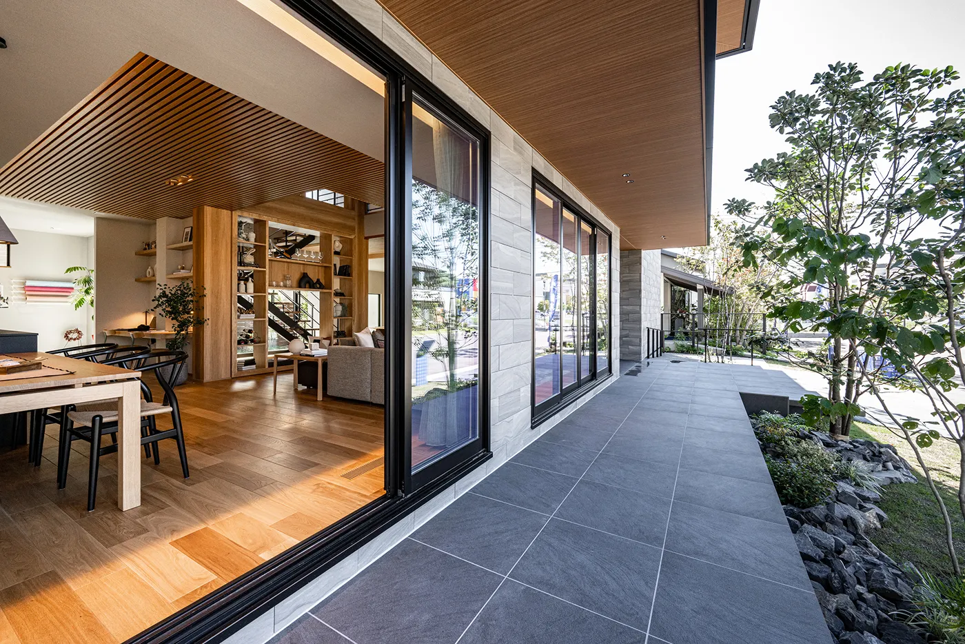 街並みにその存在感を謳う『シンセ・フィーラス』。和テイストと木のぬくもり豊かな先進の和モダン住宅。全館空調システムでキレイな空気と最適な室温を体感いただけます。